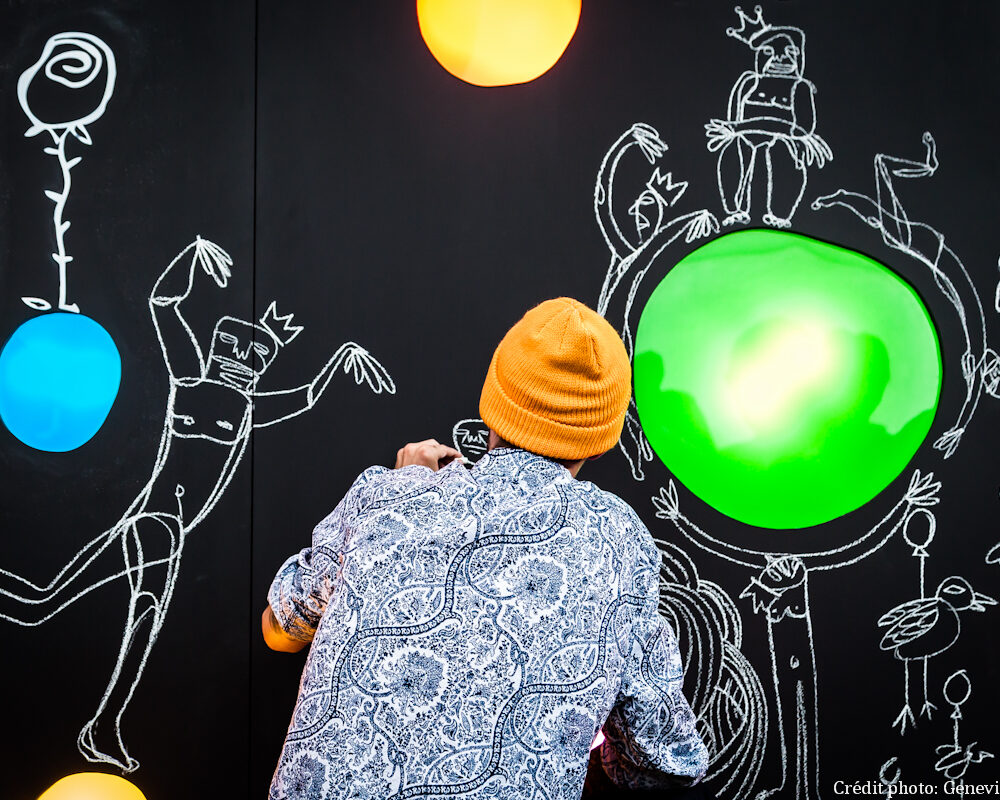 Jeune artiste influencé par le Street art, Etienne Doucet y présentait cette fresque où les frontières entre art figuratif et abstrait sont infimes, en exploitant l’art visuel sous les formes murales – tout en cherchant à s’abolir des stéréotypes du Street art et à réduire l’espace énorme qui le sépare de l’art contemporain.